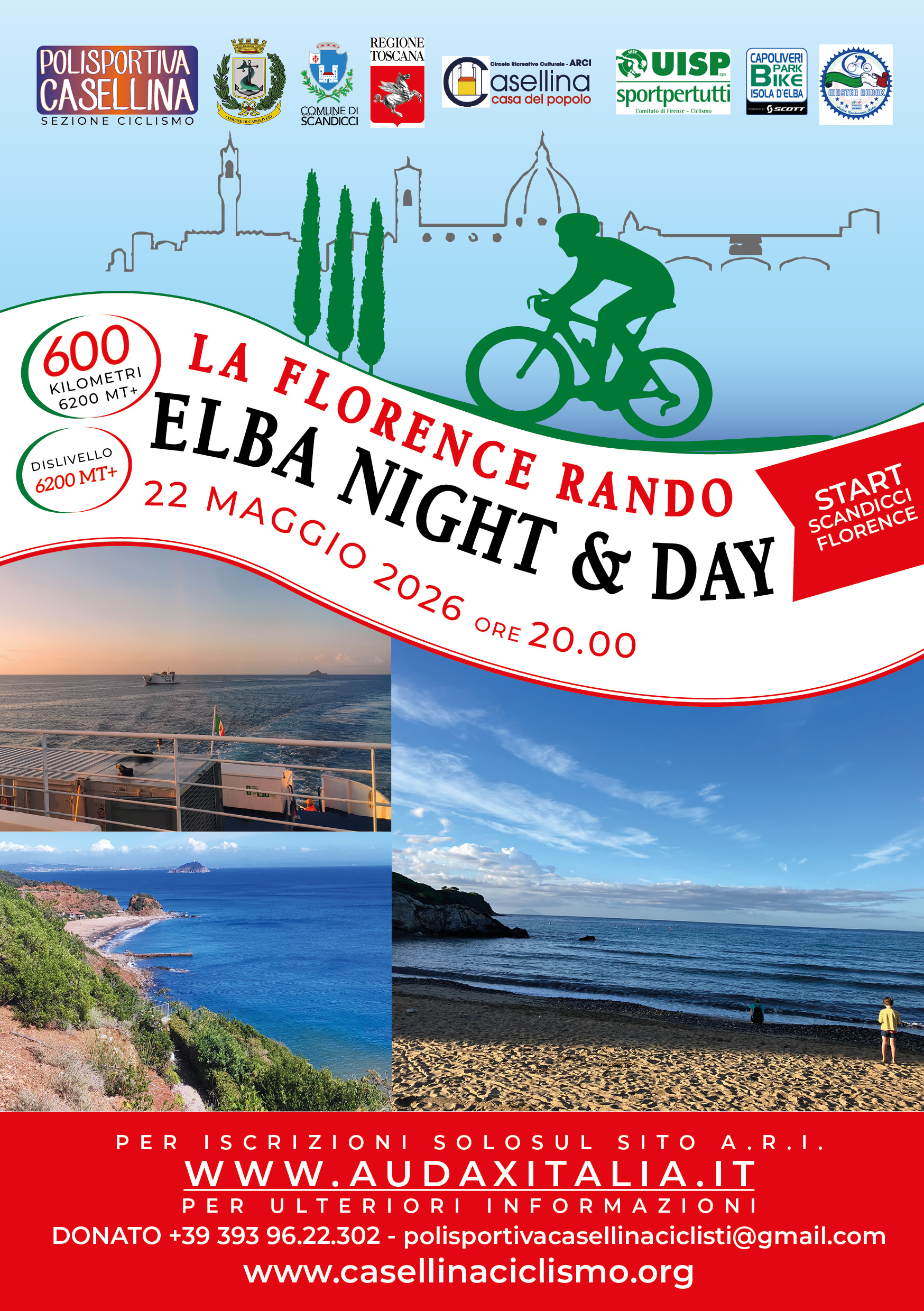 Nuova avventura ciclistica , ai randonneeurs un percorso verso l’Isola d’Elba di 600 km andata e ritorno da Scandicci (FI).